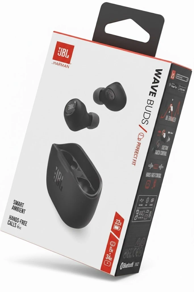 אוזניות JBL Wave Buds TWS מציעות חוויית שמע איכותית עם סאונד עוצמתי ועמוק מבית JBL, בעיצוב קומפקטי ונוח לשימוש יומיומי. האוזניות מתאימות להאזנה למוזיקה, שיחות טלפון וצפייה בתכנים, תוך שילוב של נוחות, חיי סוללה ארוכים ועמידות בתנאי יום-יום.