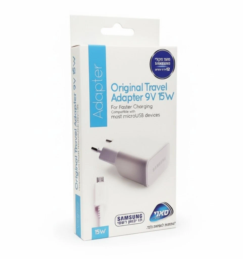 מטען קיר Samsung 15W מהיר עם כבל Micro-USB – טעינה יציבה ובטוחה, איכות מקורית מבית Samsung.