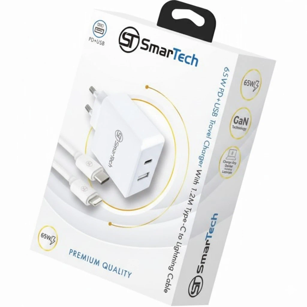 מטען קיר SmarTech – Lightning  65W PD+USB